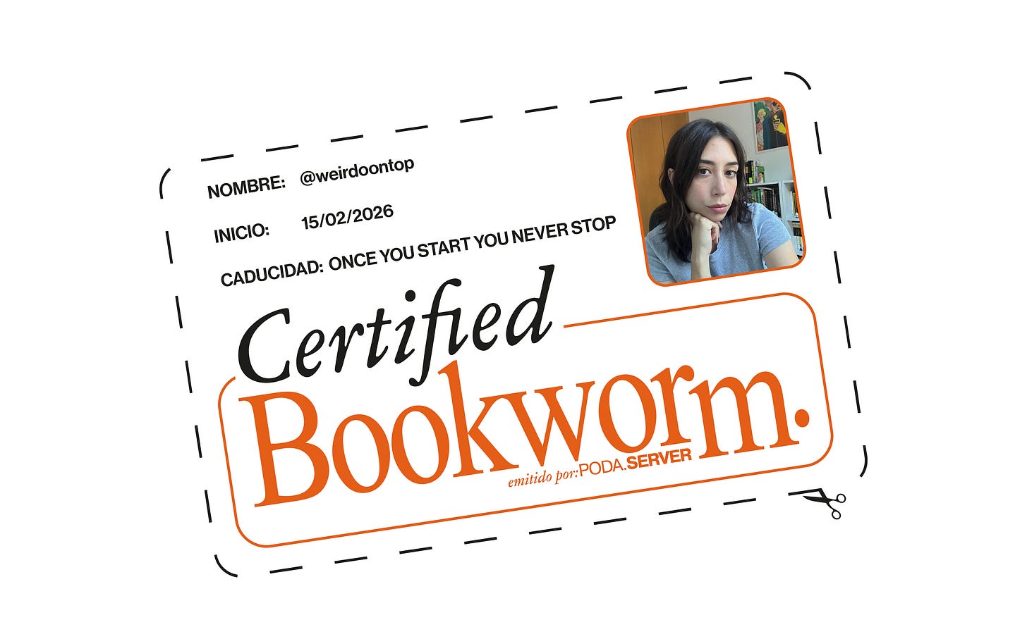 Te damos la bienvenida a Certified Bookworms. Si es tu primera vez por aquí, somos poda.server, un servicio de recomendación de libros personalizado y con esta sección de entrevistas en nuestra newsletter nuestro propósito es dar a conocer a bookworms del mundo real, personas lectoras como tú y nosotros, con la intención de romper el estereotipo de lo que es un “lector”, mostrando cómo otras personas leen e incorporan la lectura a su día a día, y a su manera.